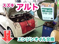 アルトのエンジンオイル交換を 行わせていただきました。 エンジンオイルの交換は、 オイルチェンジャーで古いオイルを 抜き取ります。 交換するオイルは、新車充填時のオイルと 合致した品質でありながらお買い求め安い エコグリーン0W-20 最後にオイルゲージで油量チェックして 作業完了です。 エ...