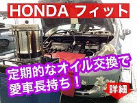 HONDA フィット エンジンオイル+オイルフィルター交換作業のご紹介です。 今回のフィットは、オイルゲージ部からホースを入れて古いオイル抜き取る【上抜き方式】で交換させていただきました。 オイル抜き取り中に安全点検も行います! 古いオイルが抜き終わったら、リフトアップしてオイルフィル...