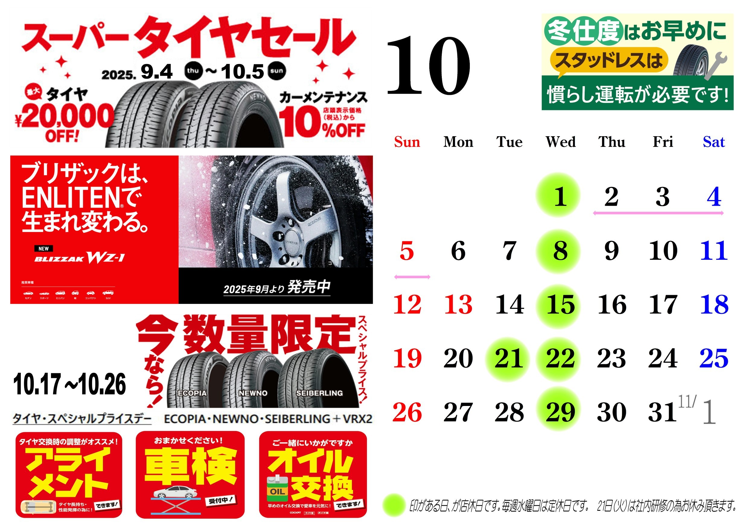 ブリヂストンタイヤをお得に買える!スーパータイヤセール開催!!