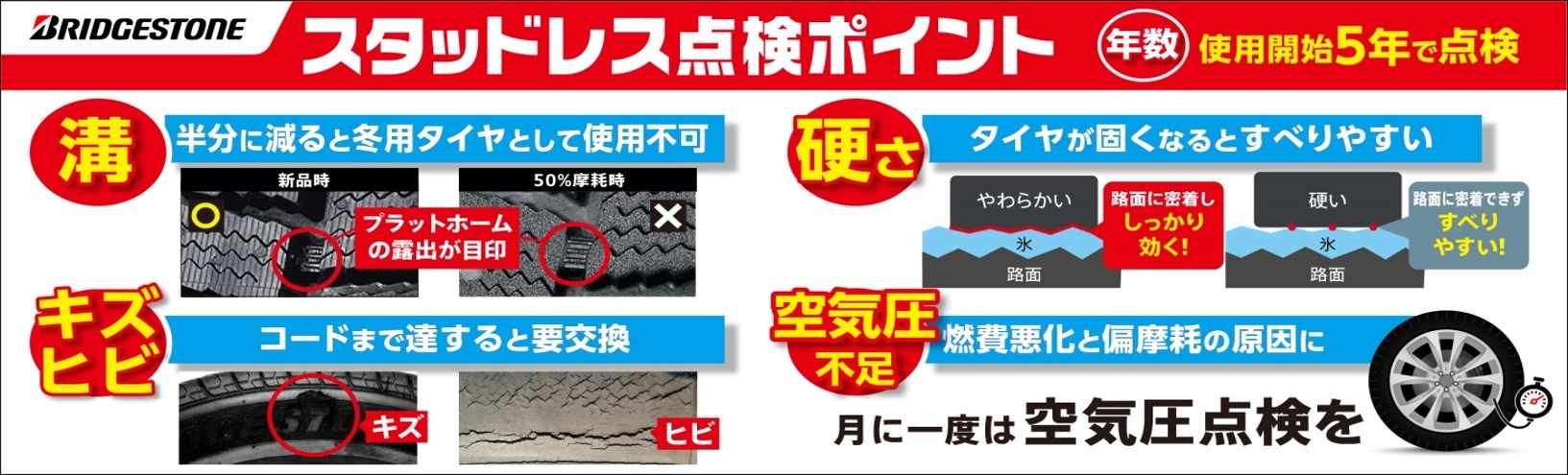 【スタッドレスタイヤ】お使いのタイヤは大丈夫?冬タイヤの点検ポイント!