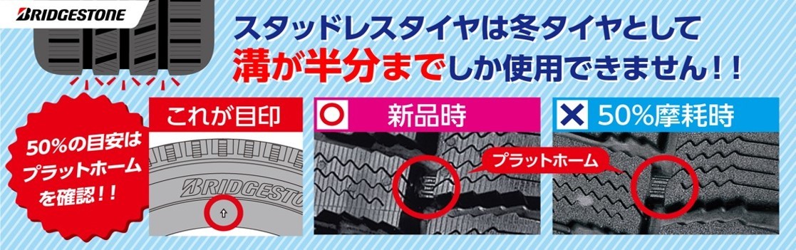スタッドレスタイヤには残り溝が半分になった時に現れる