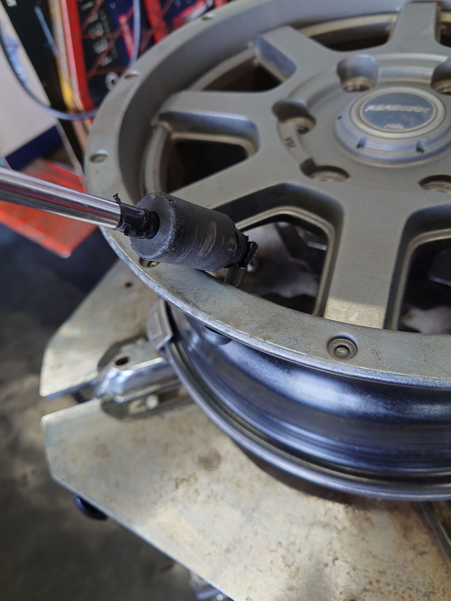 タイヤの空気の入れ口チューブレスバルブも交換します