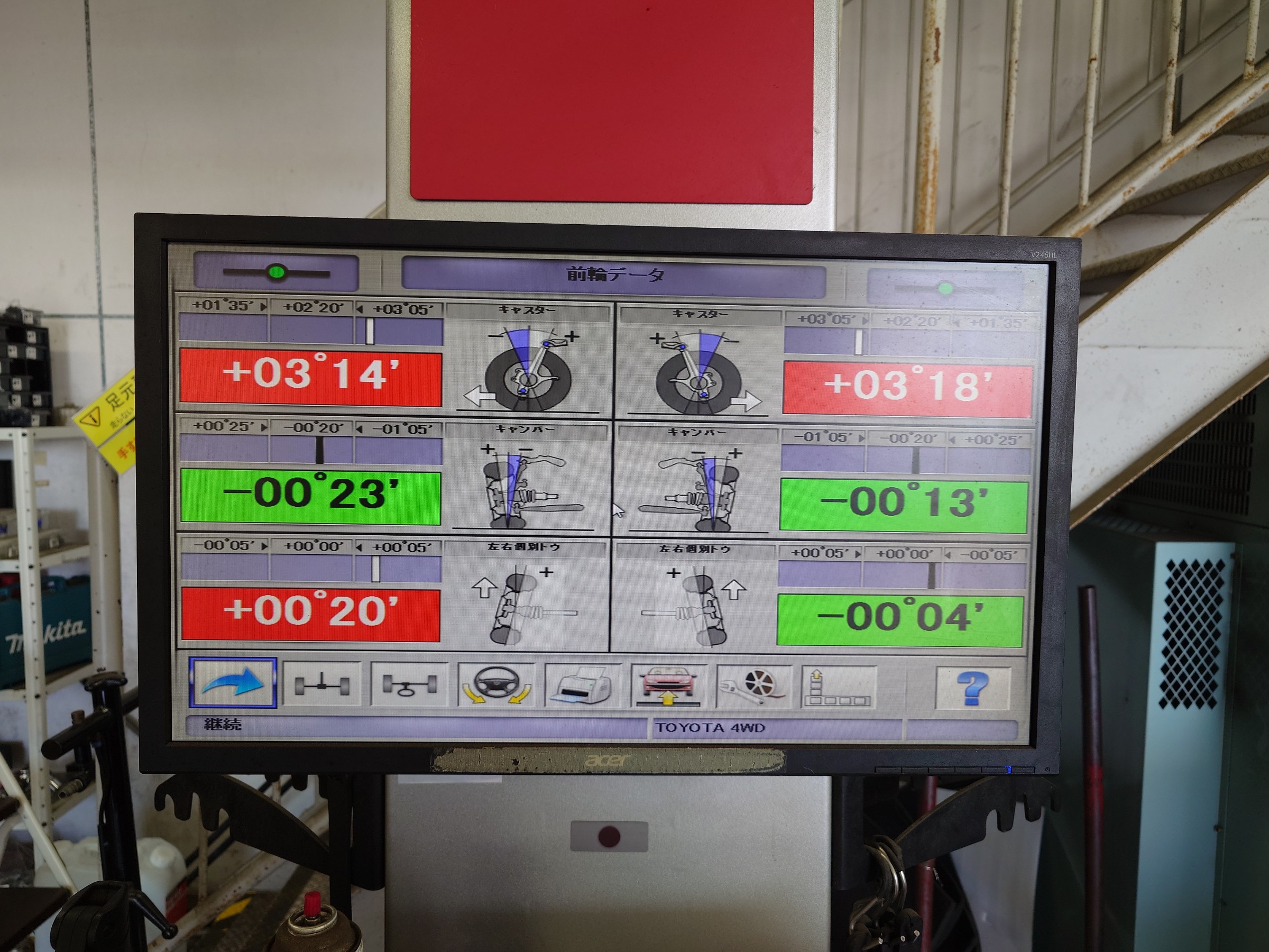 タイヤ交換後にアライメント調整をしていきます