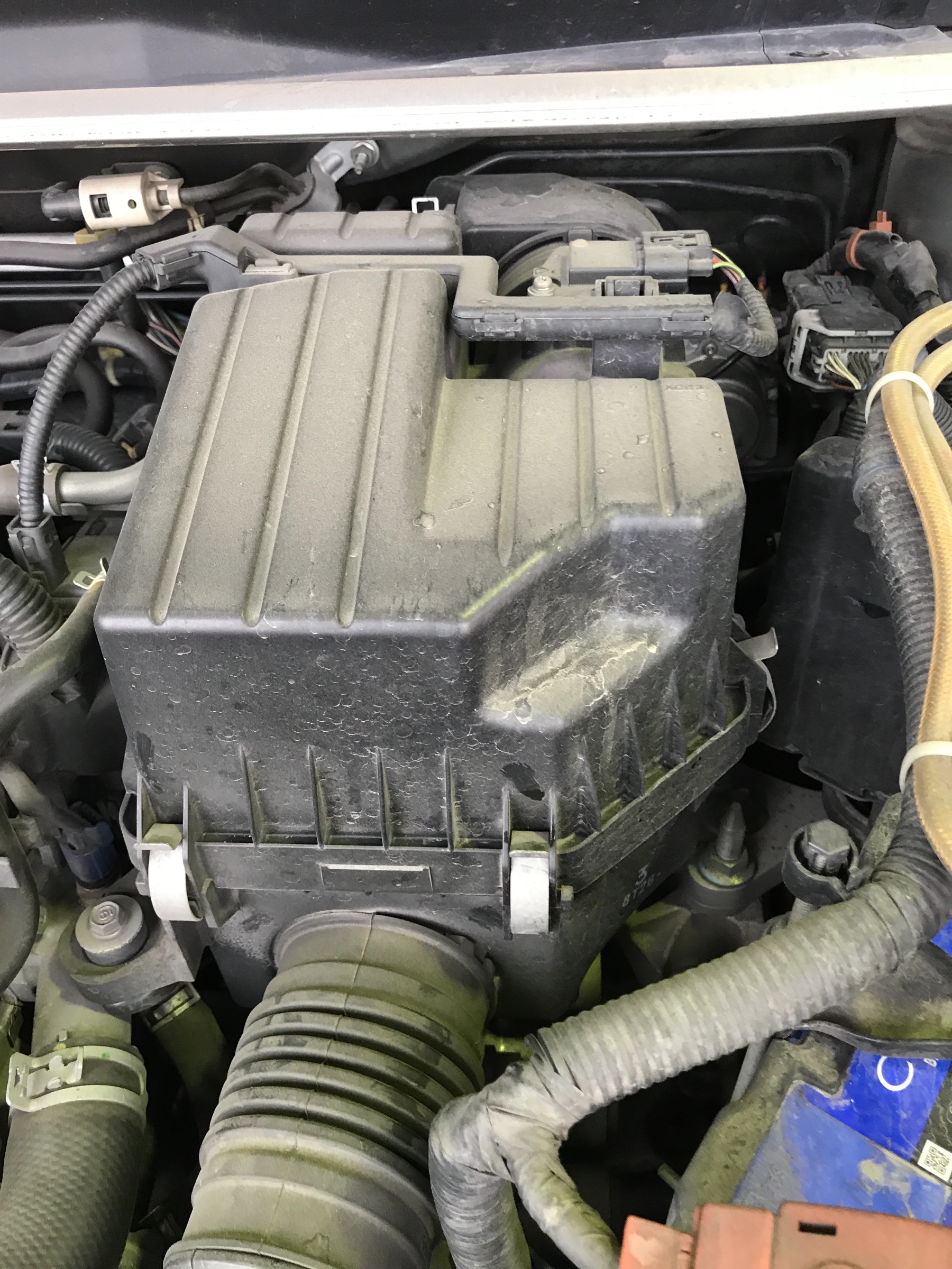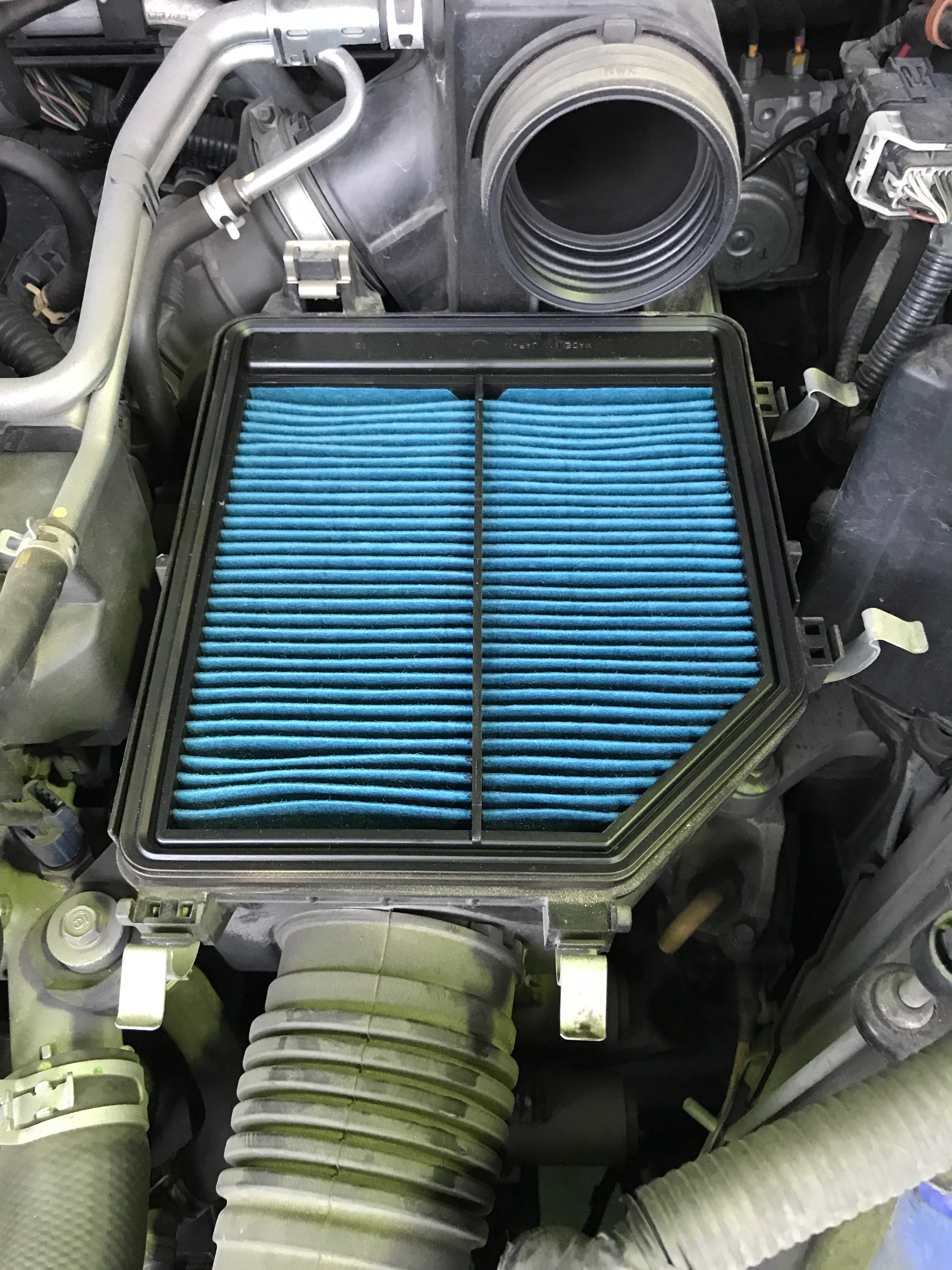 まずは、エンジンルーム内のエアクリーナーから交換です。