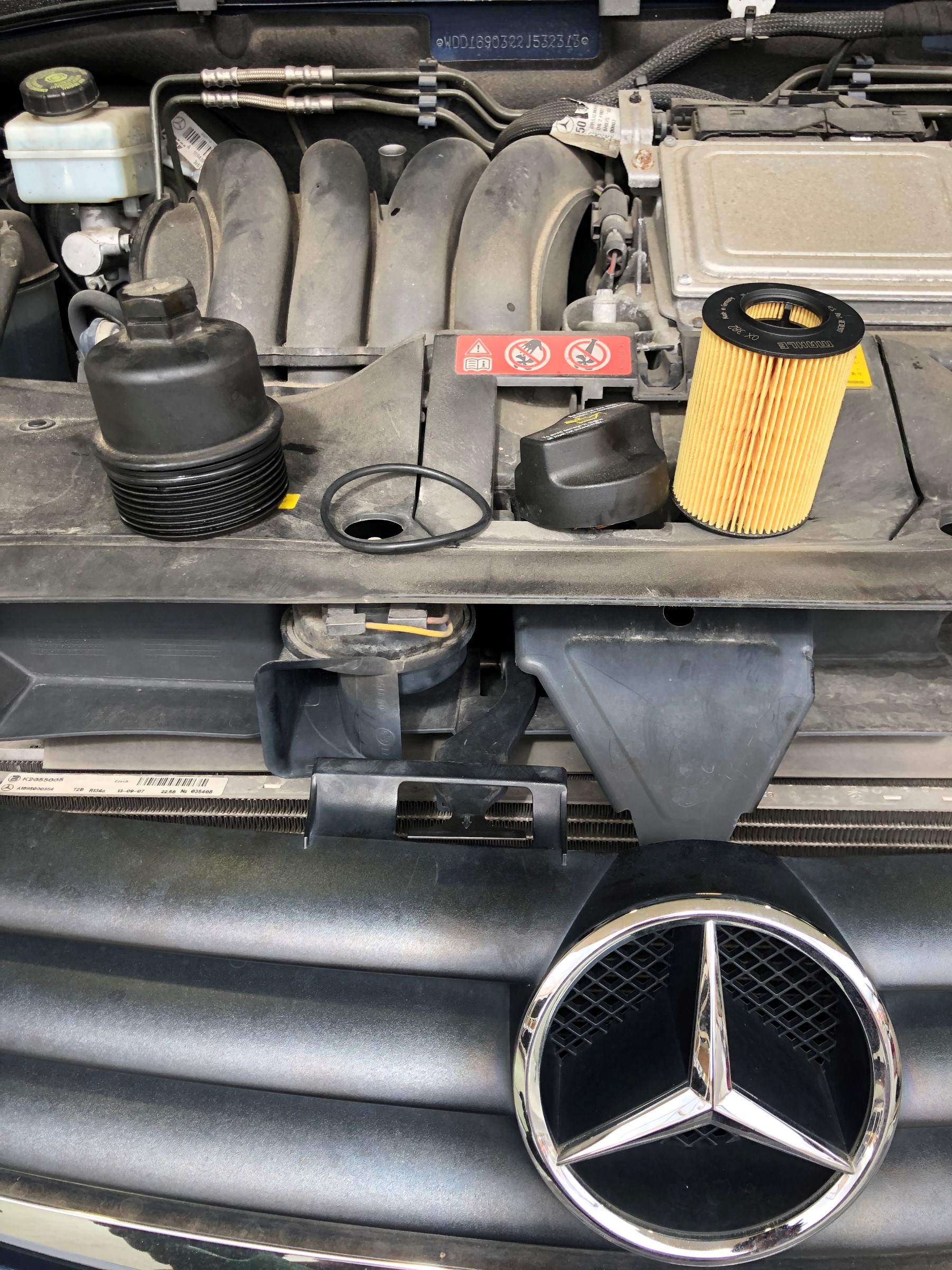 本日、ベンツのオイルとエレメント交換を行いました。