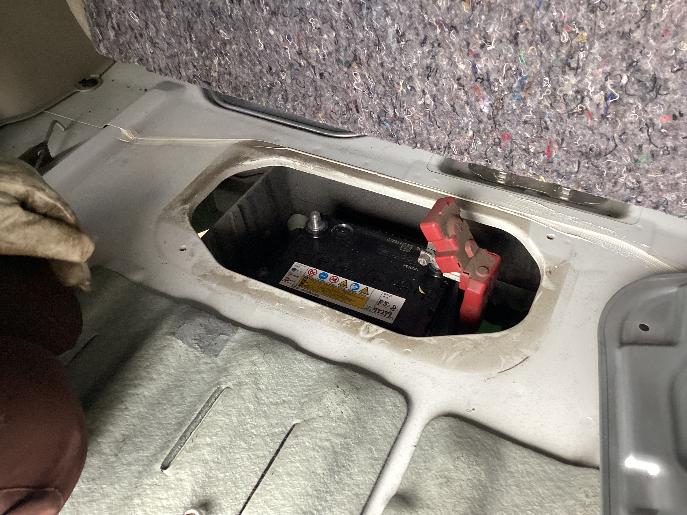 エブリイは荷台のフロアカーペットの下にバッテリーが隠れています。