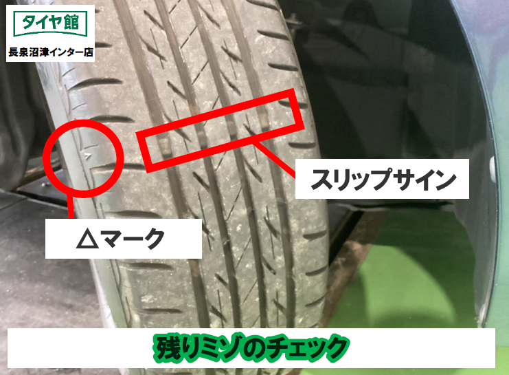タイヤの状態を見るのに重要なポイントが【残りミゾ】です。