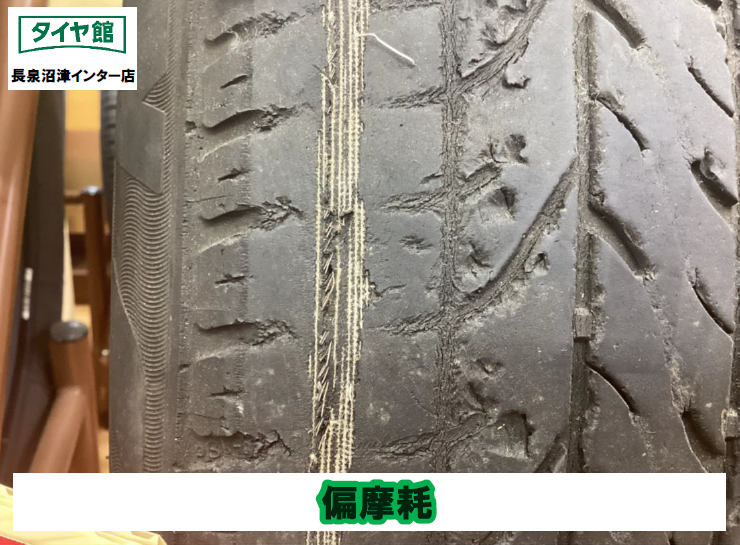 【偏摩耗】をしているタイヤもタイヤの交換をしなくてはいけないかもしれません。