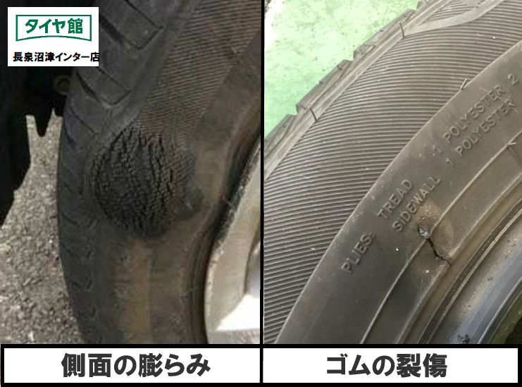 【損傷】のあるタイヤは例え使用年数が少なくても交換が必要です。