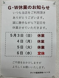 GW定休日のお知らせ