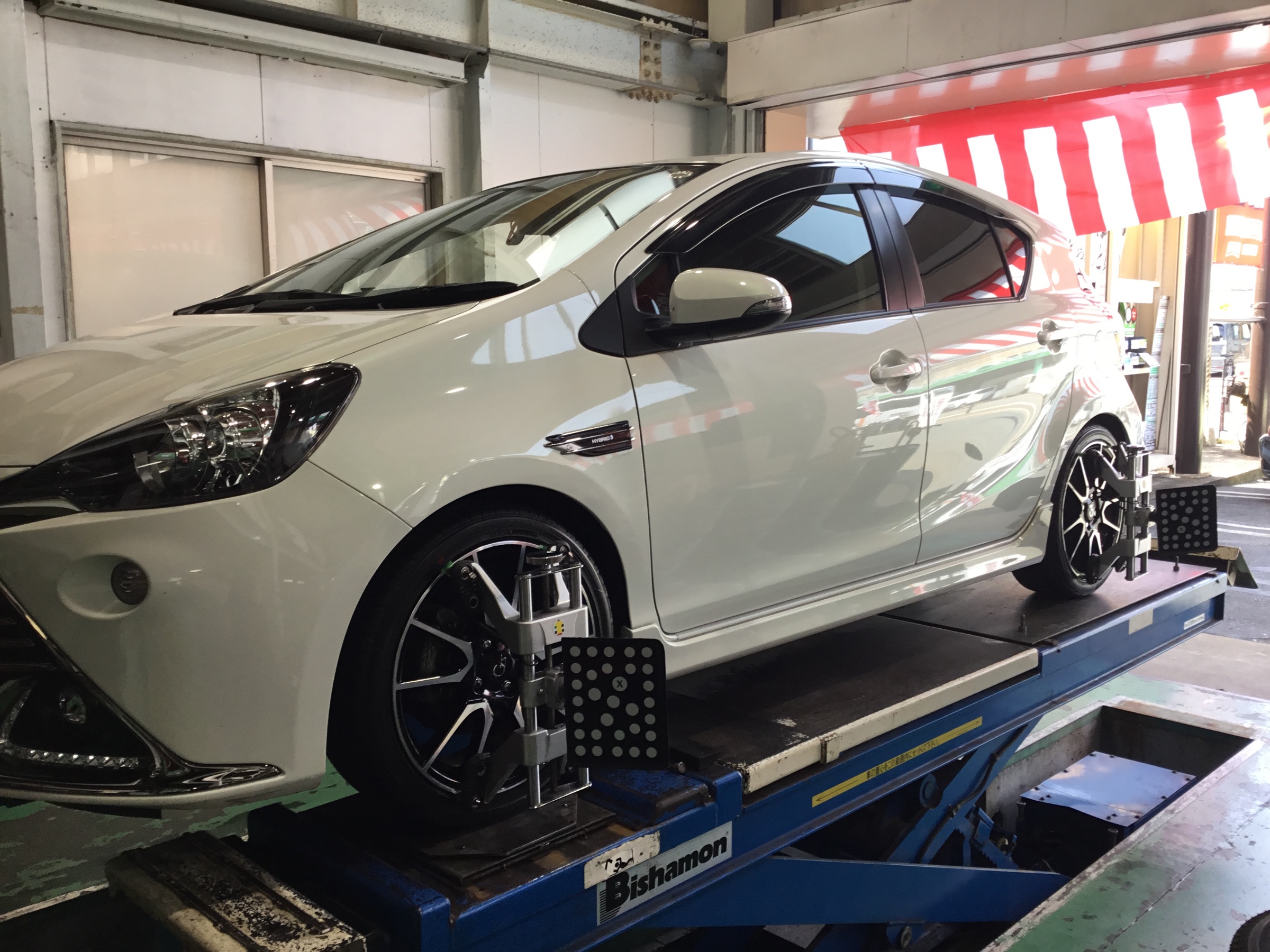 先日、アクアG'zでご来店のお客様にタイヤ交換とアライメント調整を実施させて頂きました。