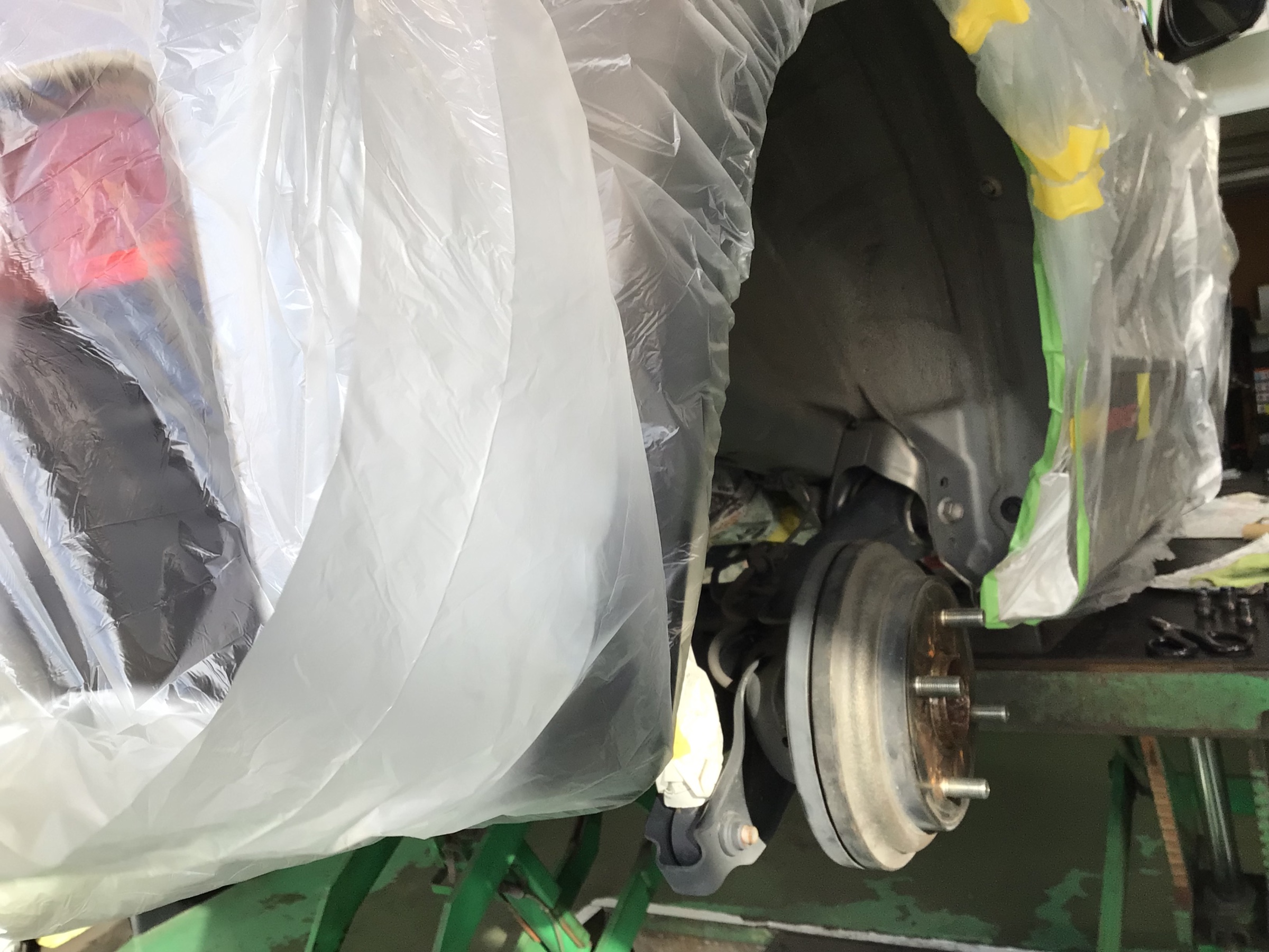 お車のボディなどは念入りに養生します。