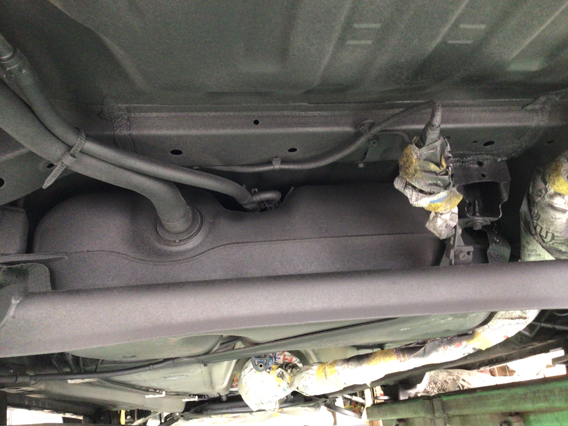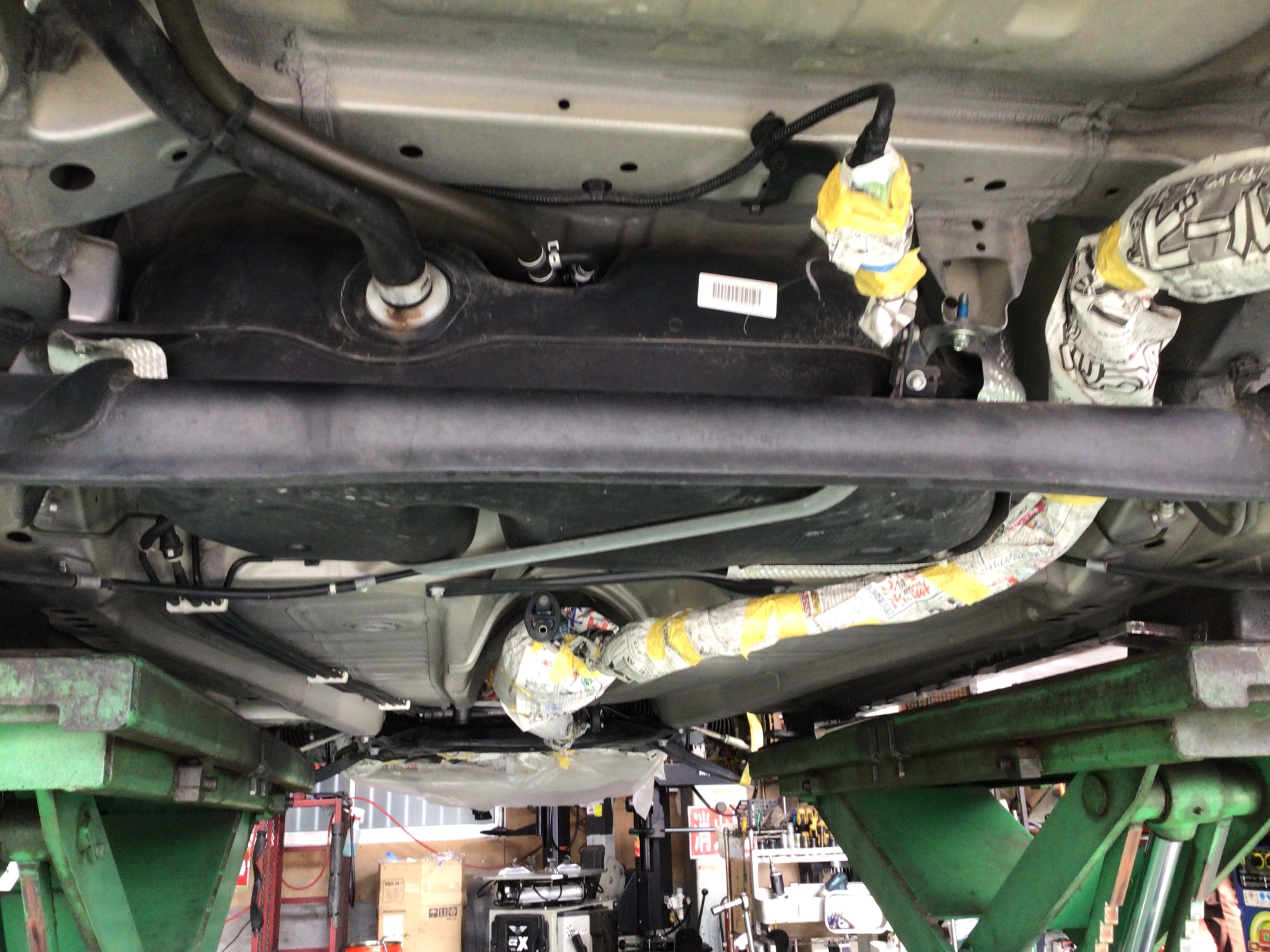 下回りは高温になるマフラーや各センサー類も養生していきます。