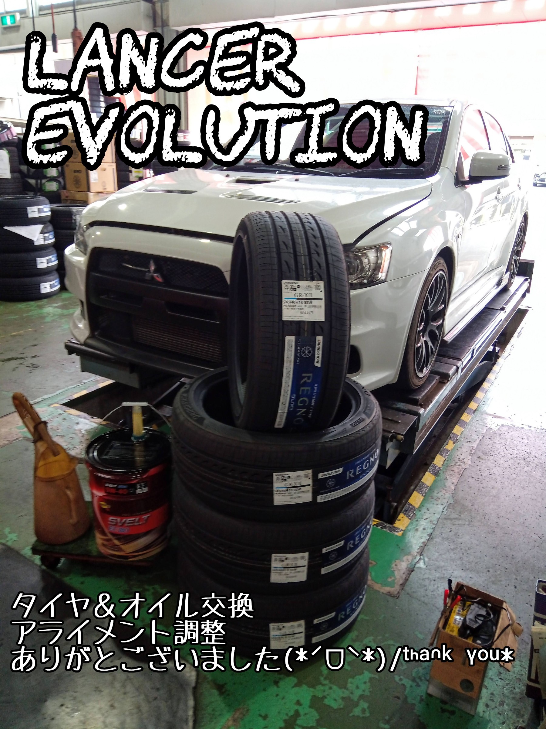 ランエボ10 タイヤ交換&アライメント調整 しました٩(´ᗜ`*)و