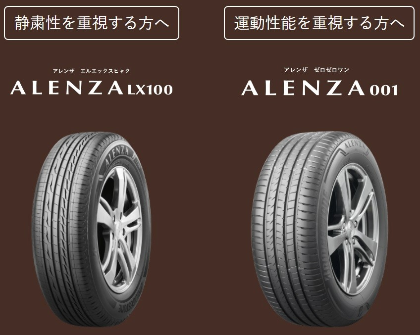 対して、力強い走りを支えようと開発されたのがALENZA 001です。タイヤパタンを工夫し、乾燥時も雨天時も安定して走れるよう調整。またゴムに特殊なシリカを配合することで従来品級の摩耗寿命を保ちつつ、より低燃費なタイヤを実現しています。