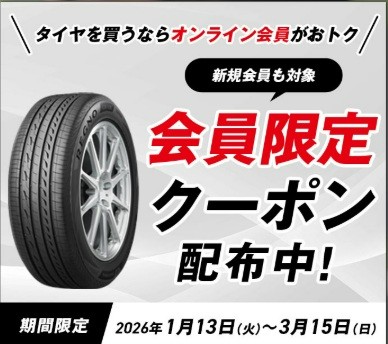 ※ブリヂストン タイヤオンラインストアの全商品が対象です。