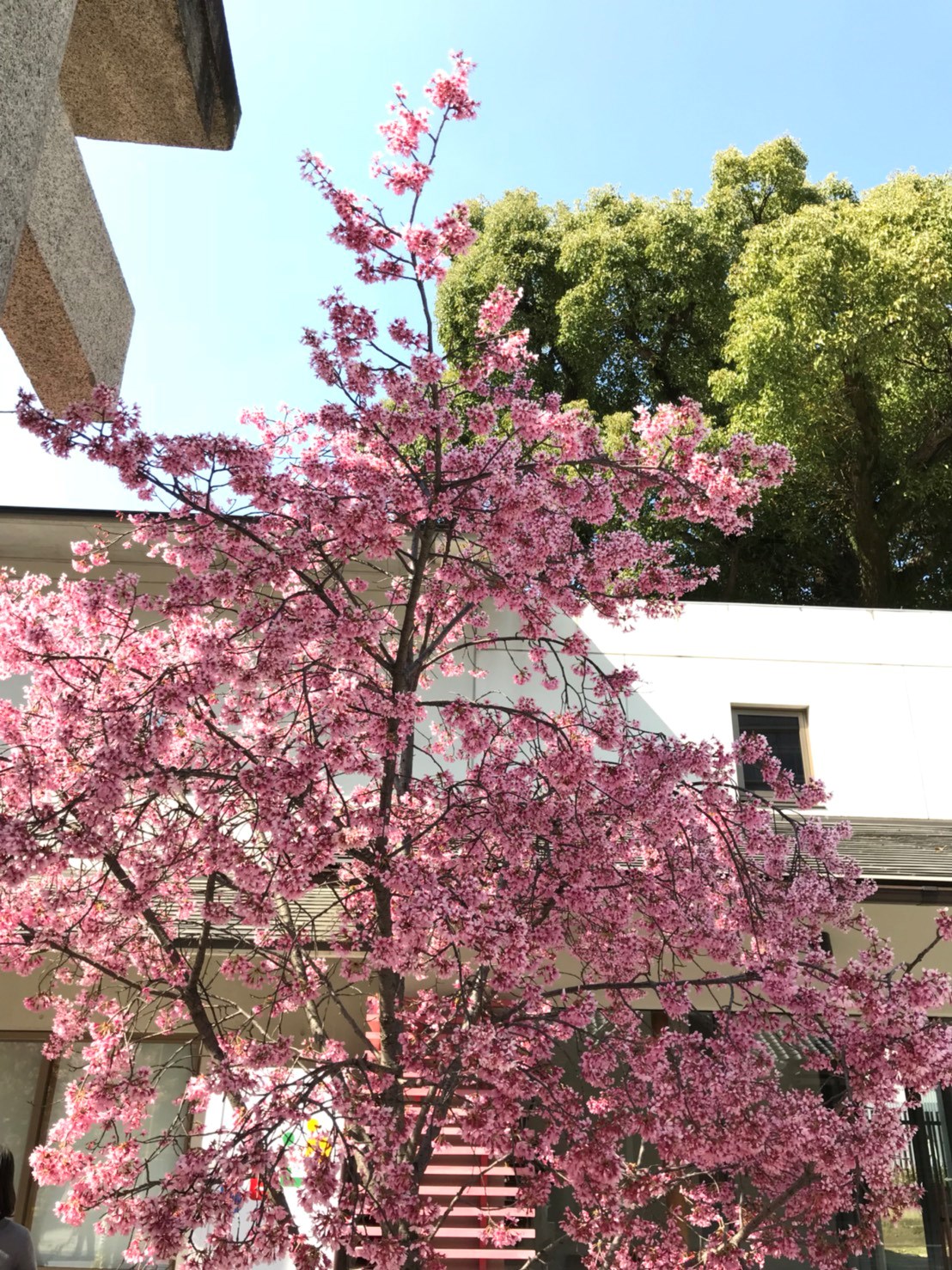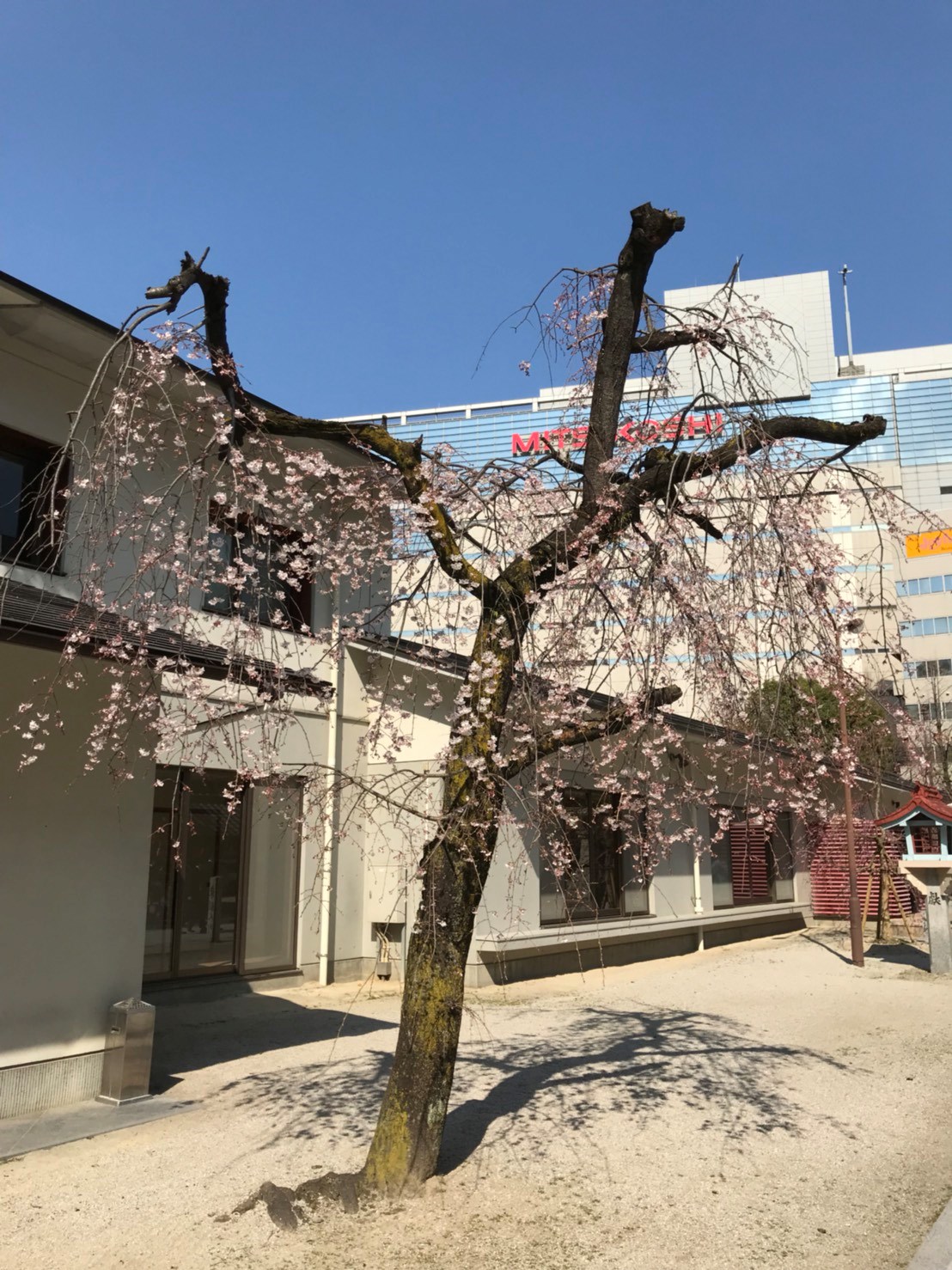 先日、天神に出かけたんですが、警固神社にある桜はもう満開を迎えていました。