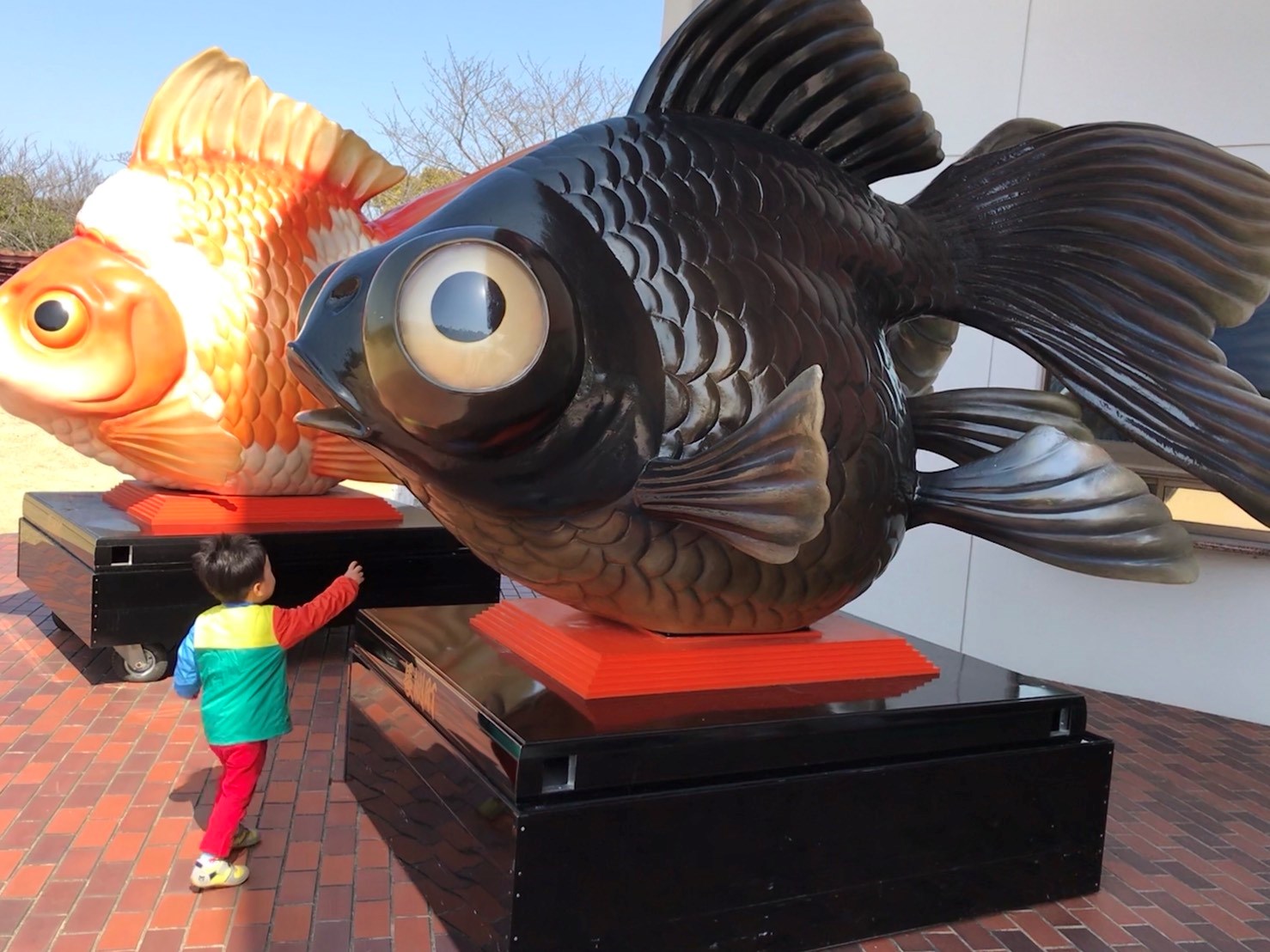 実家の近くの公園に大きな金魚がいます。