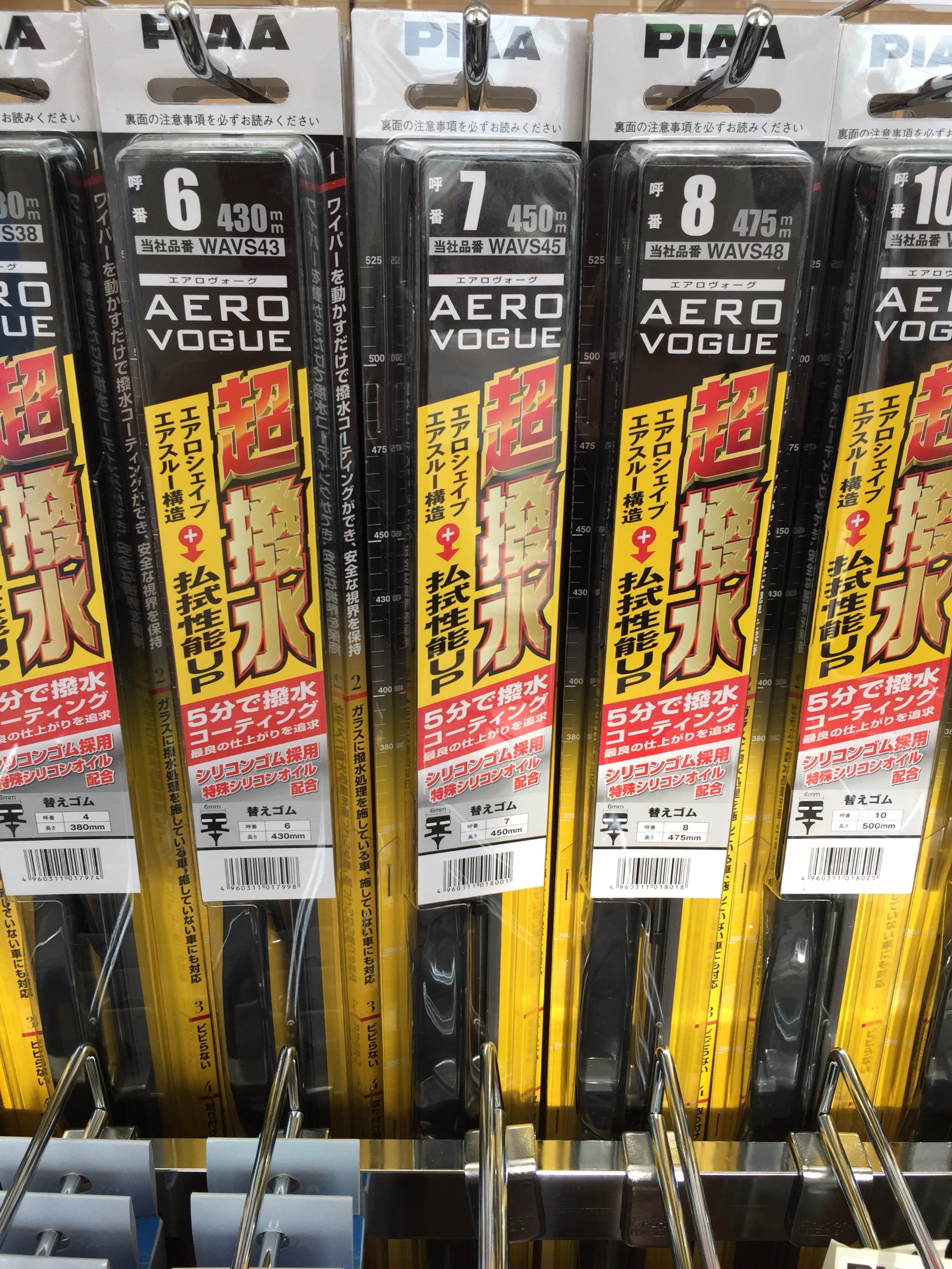 PIAA エアロヴォーグ ポスト 最近のデザインワイパータイプのワイパーです PIAA製のワイパーはWRCにてトヨタチームに採用されているワイパーです 5分で撥水性能を発揮し、トーナメントタイプにはないブレードカバーのスポイラー効果で高速時のワイパーの浮きをも軽減してくれます カテゴリ:商品情報 その他メンテナンス