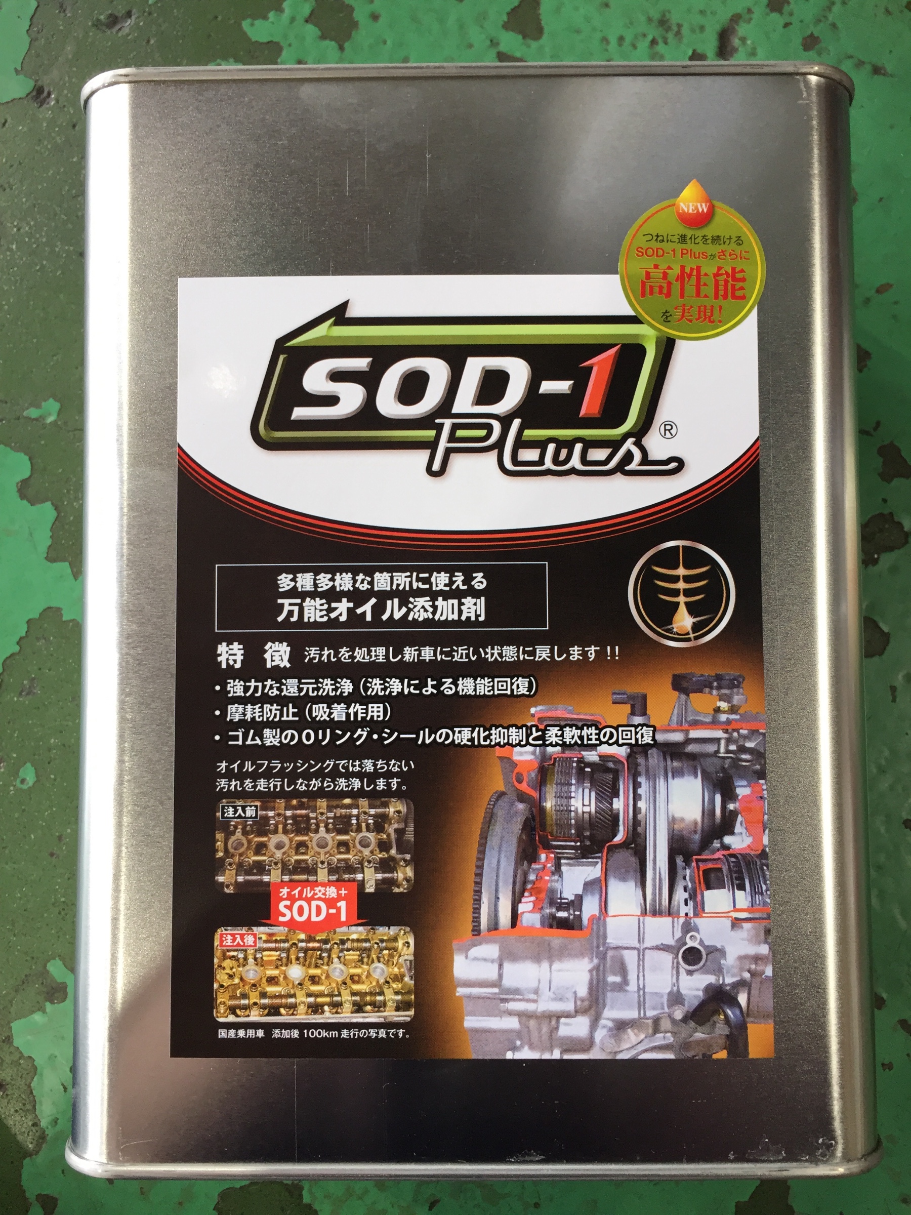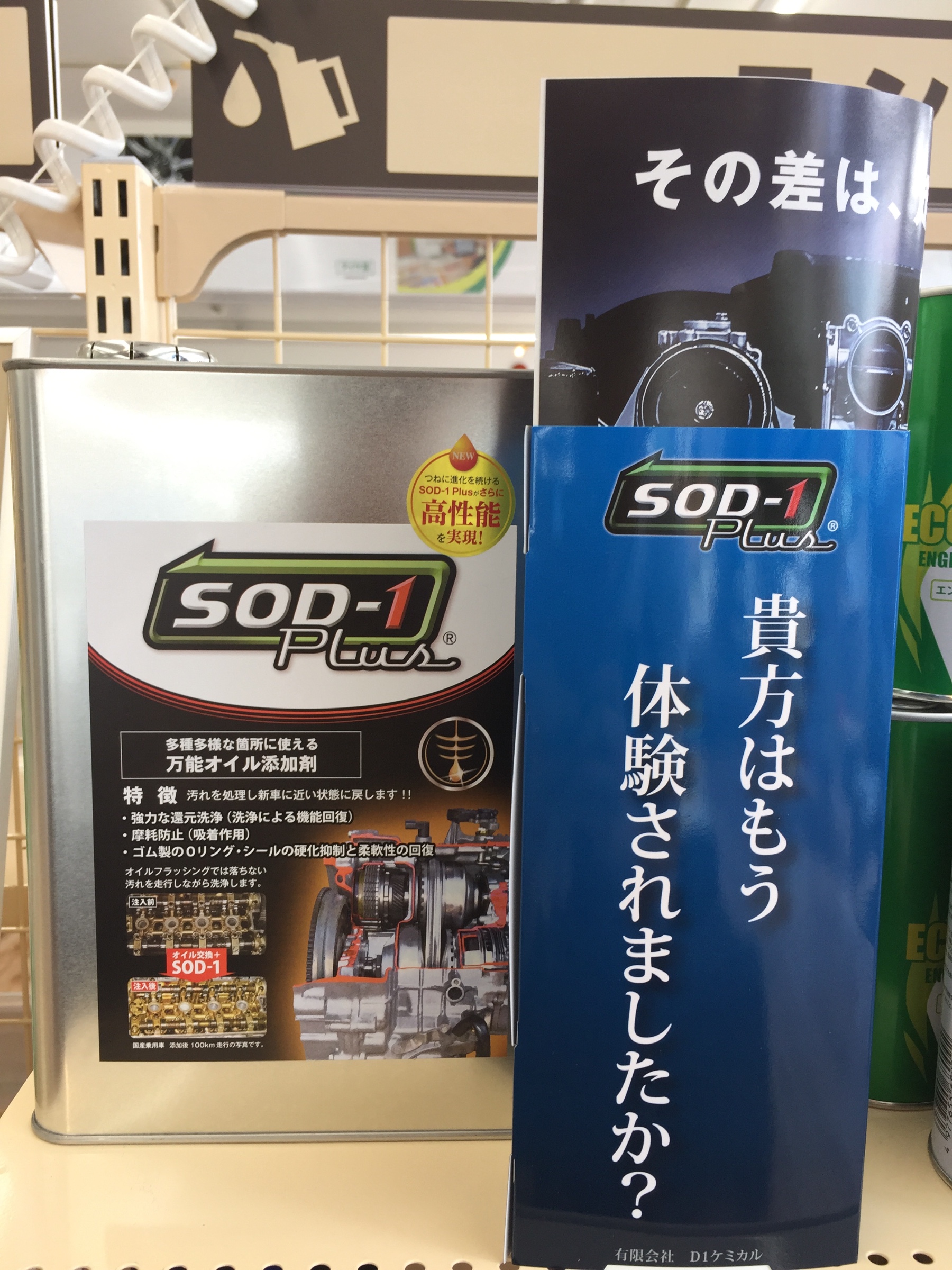 SOD-1puls ポスト エンジンオイル、ギア デフオイル、パワステフルード、ATF、CVTフルードすべてに添加剤できる世界で唯一の添加剤です 洗浄作用、摩擦軽減作用、ゴムシール保護作用の効果によってエンジンピックアップ向上、ミッションの入りが向上、白煙軽減、ジャダー軽減、オイル消費軽減などが期待できます 福岡整備振興会認定です カテゴリ:商品情報 その他メンテナンス