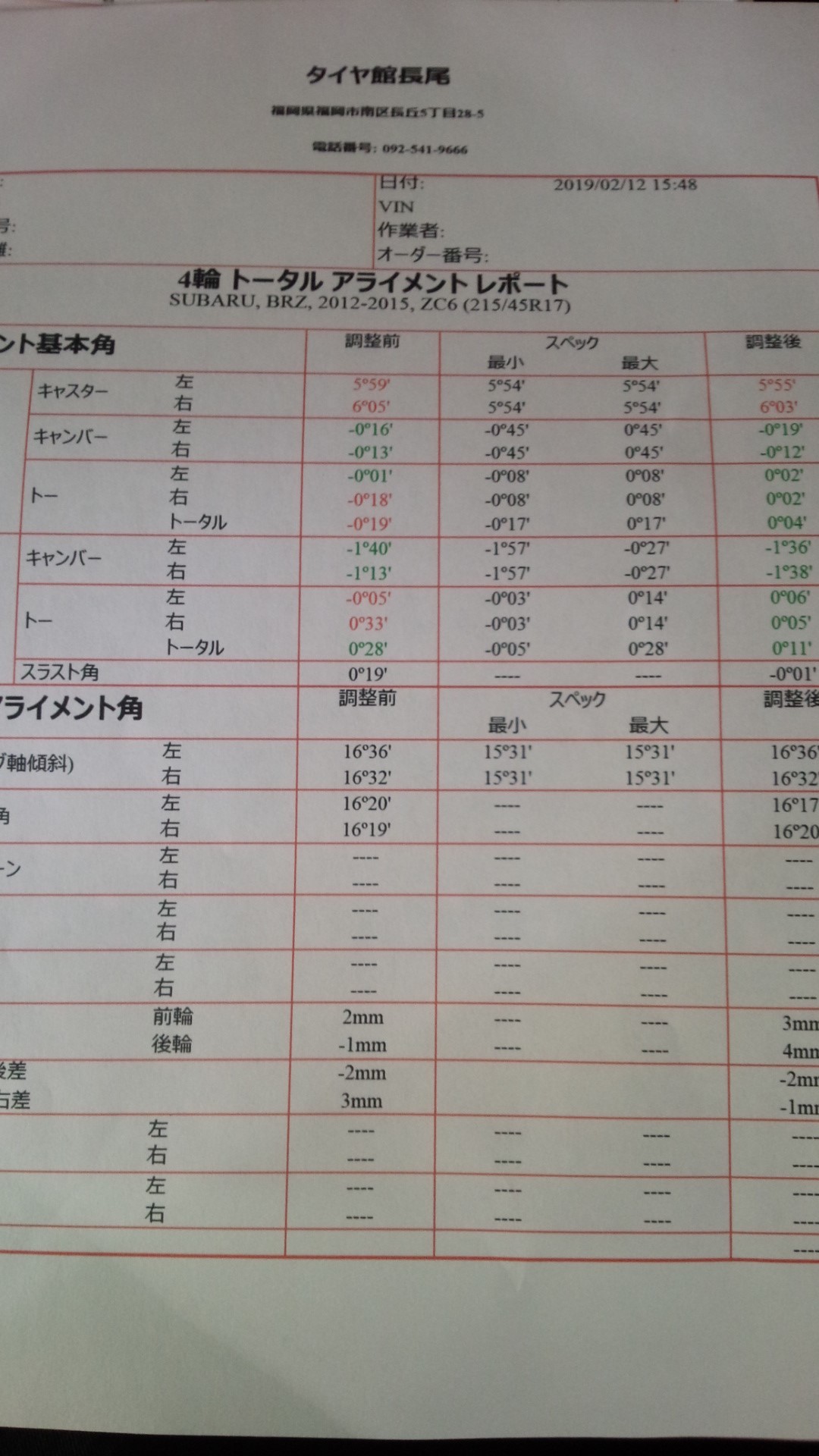 調整後にはどこを調整したかわかるようにこのように記録用紙をお渡ししますので