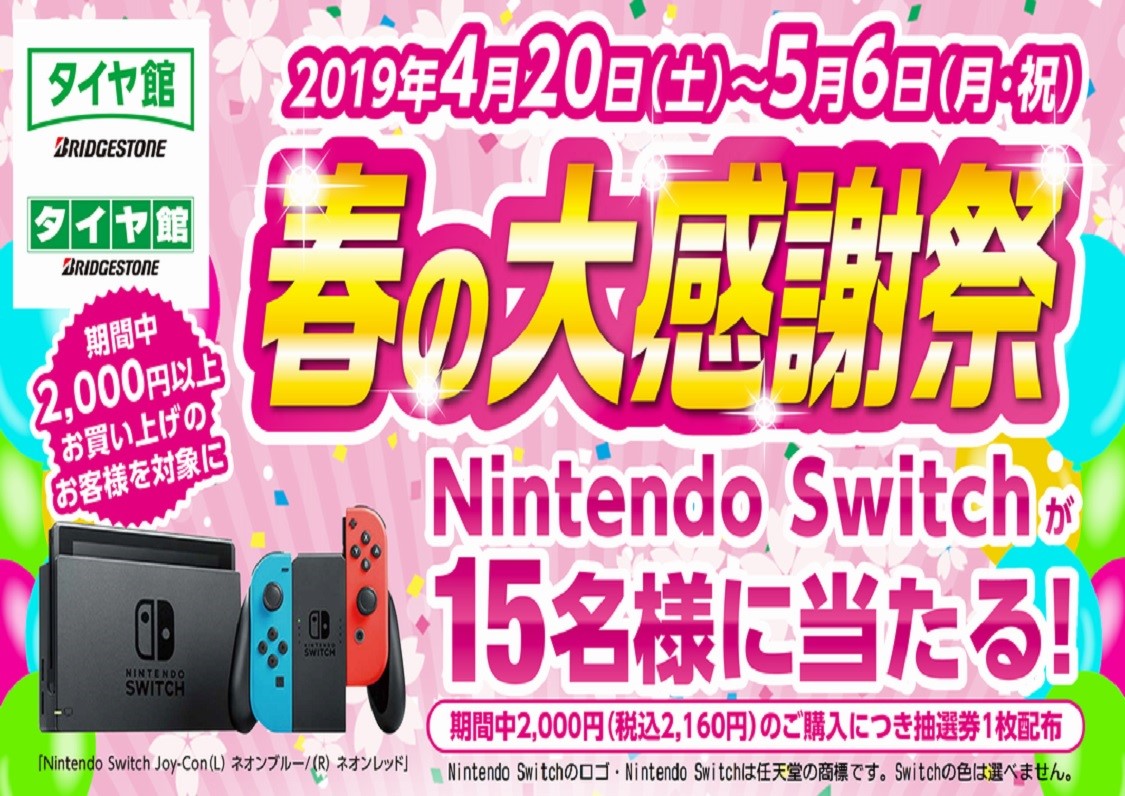 4/20(土)~5/6(月祝)の間に2000円(税別)以上ご購入いただいたお客様に