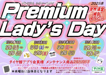こんにちは~!! 福岡市 南区 にある タイヤ屋さん タイヤ館 長尾店のWEBを ご覧頂きありがとうございますヾ(≧▽≦)ノ 11月は【プレミアムレディースデイ】開催月です(*´▽`*) 今年最後のプレミアムレディースデイです!! 2025年は2月・5月・8月・11月の4回開催予定です。 第1回目 2/10(月)~2/25...