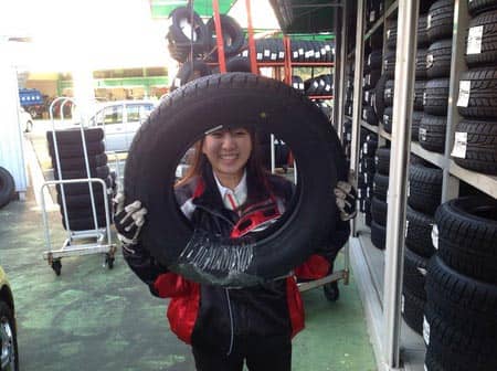 普段店内にいることが多いのでたまには外で何かしようと思い、タイヤを運ぶのをお手伝い…