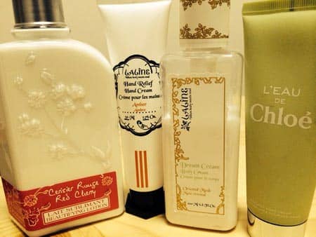 一番右のクロエのハンドクリームは貰い物、一番お気に入りの香りなので勿体ぶってあまり使えずにいます(^^;;
