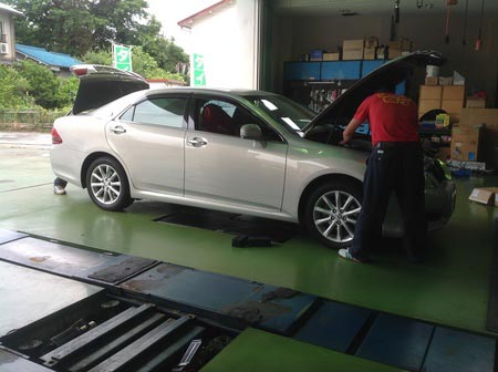 そんな今日はタイヤ交換ではなくクラウンロイヤルの作業をのぞき見…