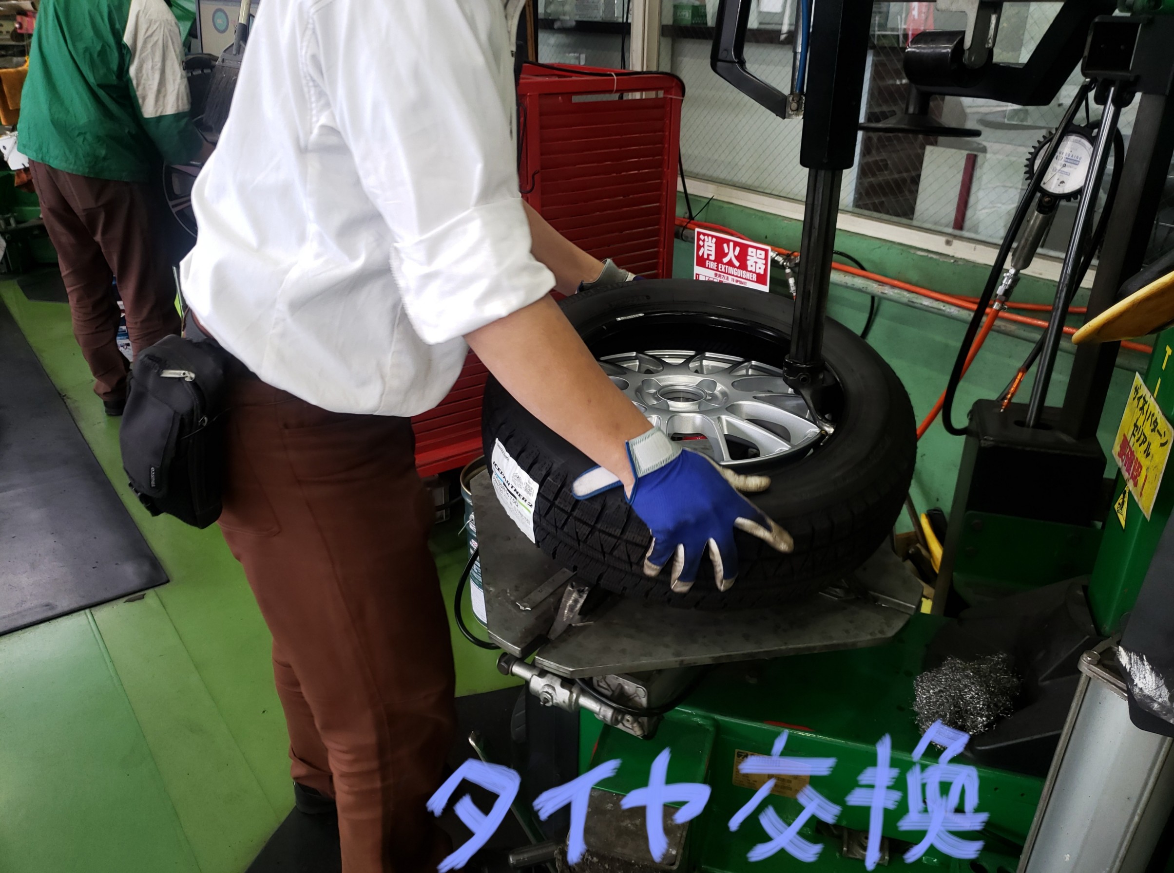 主な作業内容は、タイヤ交換、