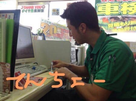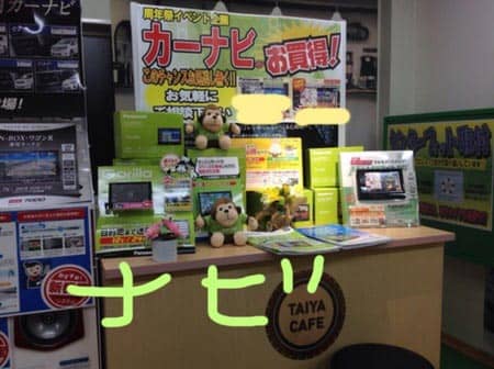 写真は抽選のクジをせっせと作る店長と目玉商品のナビコーナーです(^^)