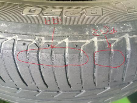 タイヤにヒビが入っている、溝が減っている等…