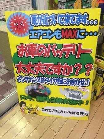 当店ででは専用のテスターを使って点検しています。点検は無料です!しかも今ならセール中なのでお買い得ですよ(^O^)/