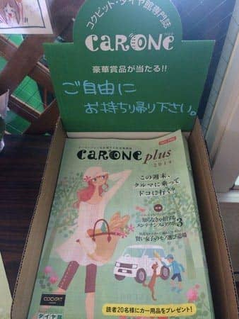 ウェイティングコーナーに写真のようなカロネというフリーペーパーを置いています。