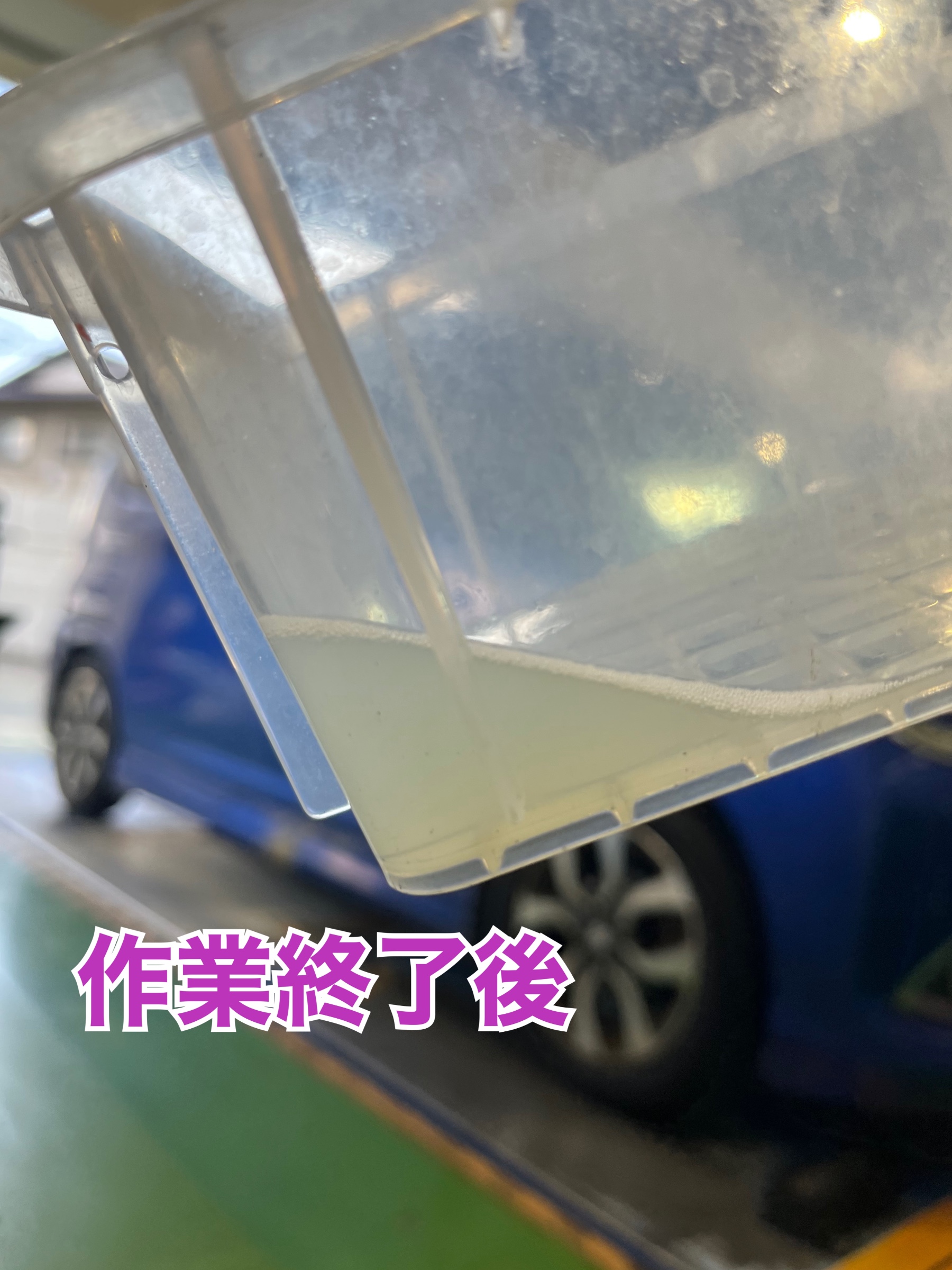注入作業が終わればドレンホースから溶剤が液体になり汚れと一緒に出てきます