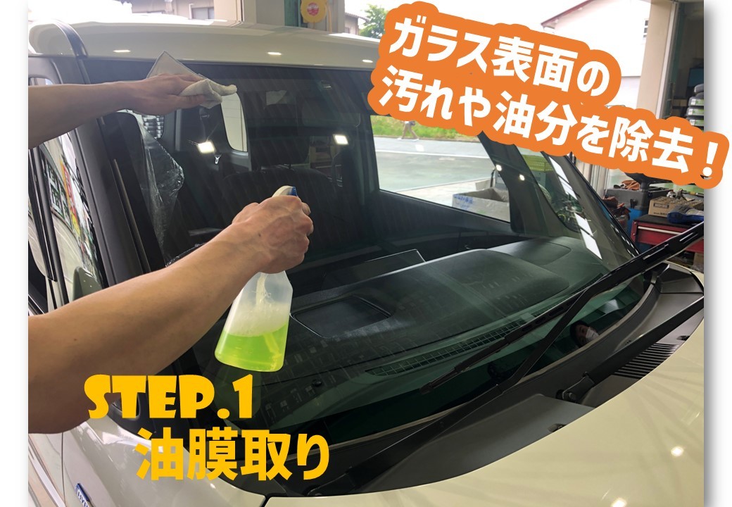 まずはガラス表面に付着した汚れや油分を落としていきます。