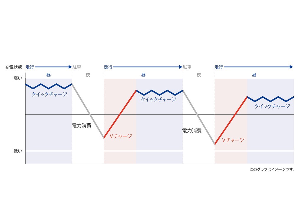 電力を大量に消費した状態から充電する「Vチャージ」の、