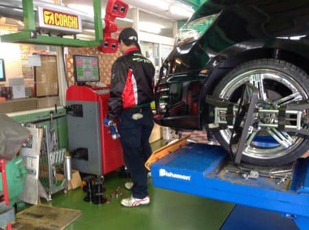 河野さんがやっているのはアライメント調整という作業なのですが、タイヤの角度の微妙な歪みを直す車の骨盤矯正のようなものです(^v^)