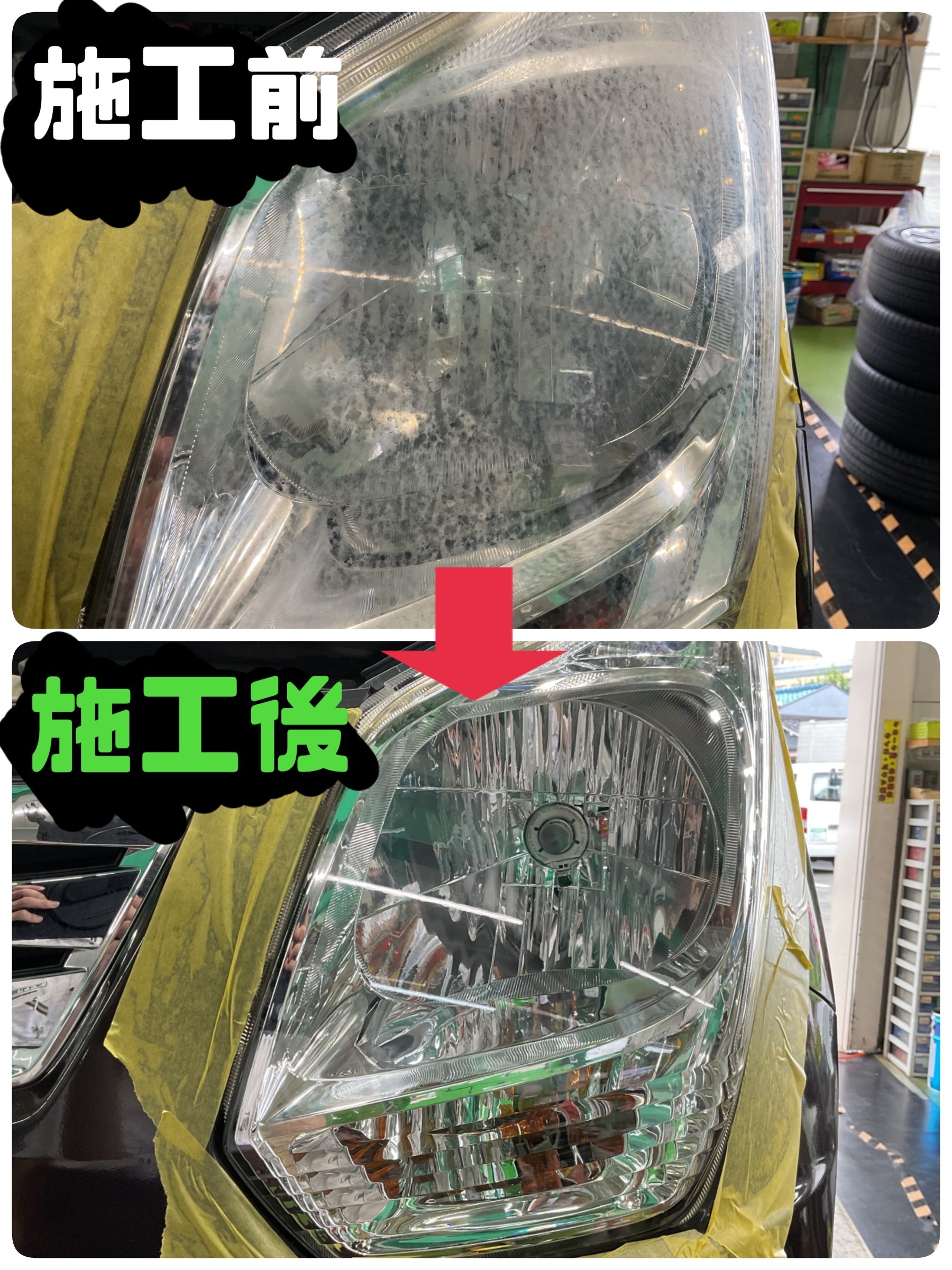 タイヤ館ではヘッドライトコーティングも