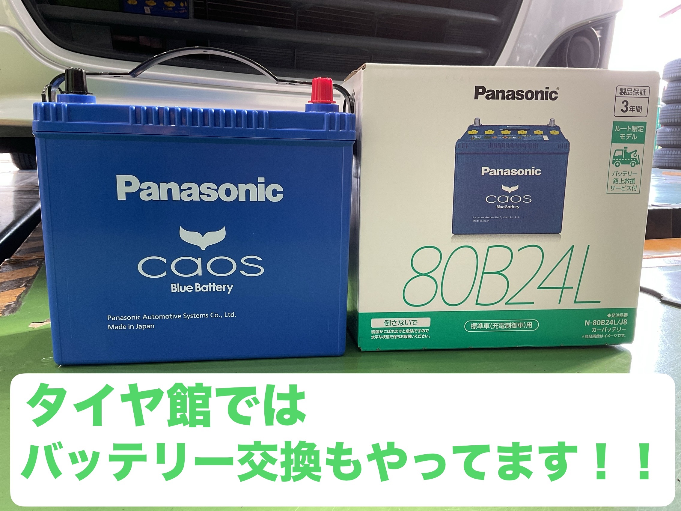 タイトルの通り、タイヤ館ではバッテリー交換もしています!