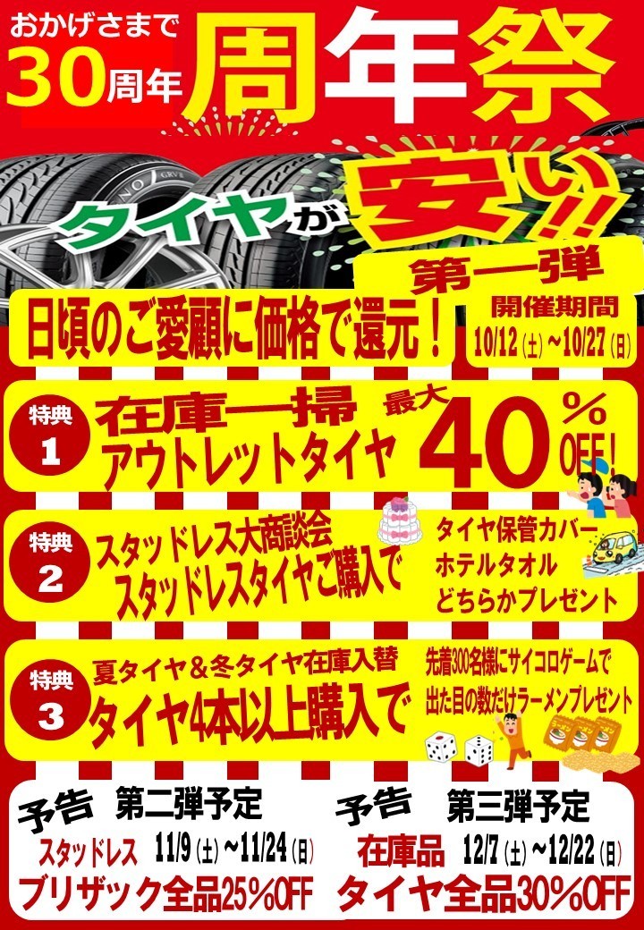 周年祭ではいつも以上にタイヤがお得であるだけでなく