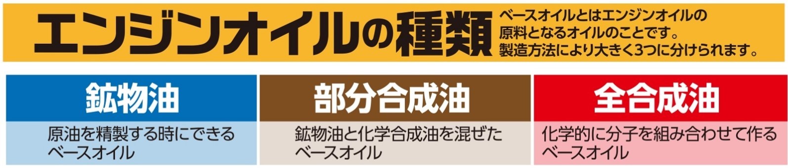 エンジンオイルは3つの種類に分けられており