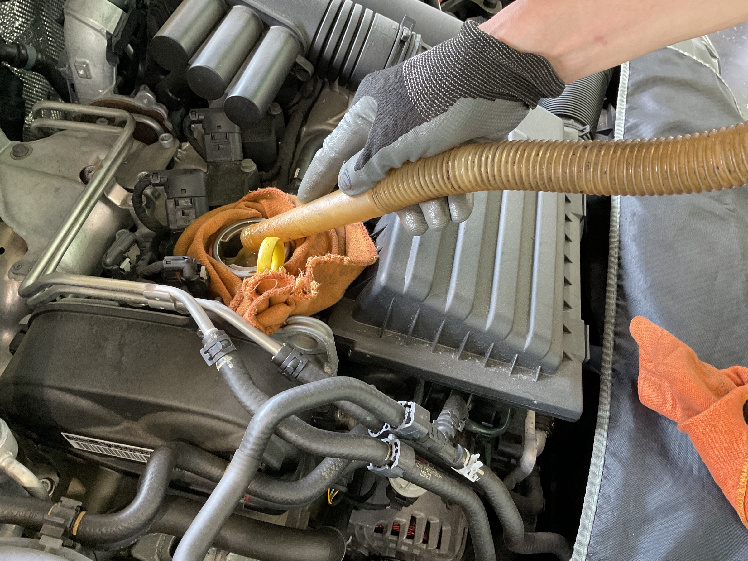 オイルチェンジャーで上からオイルを抜いていきます。