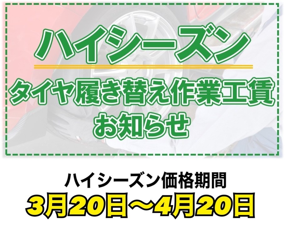 2025年3月20日(木)より混雑緩和を目的としてタイヤの履き替え作業(=脱着作業)に対しまして”ハイシーズン価格”を導入する運びとなりました。