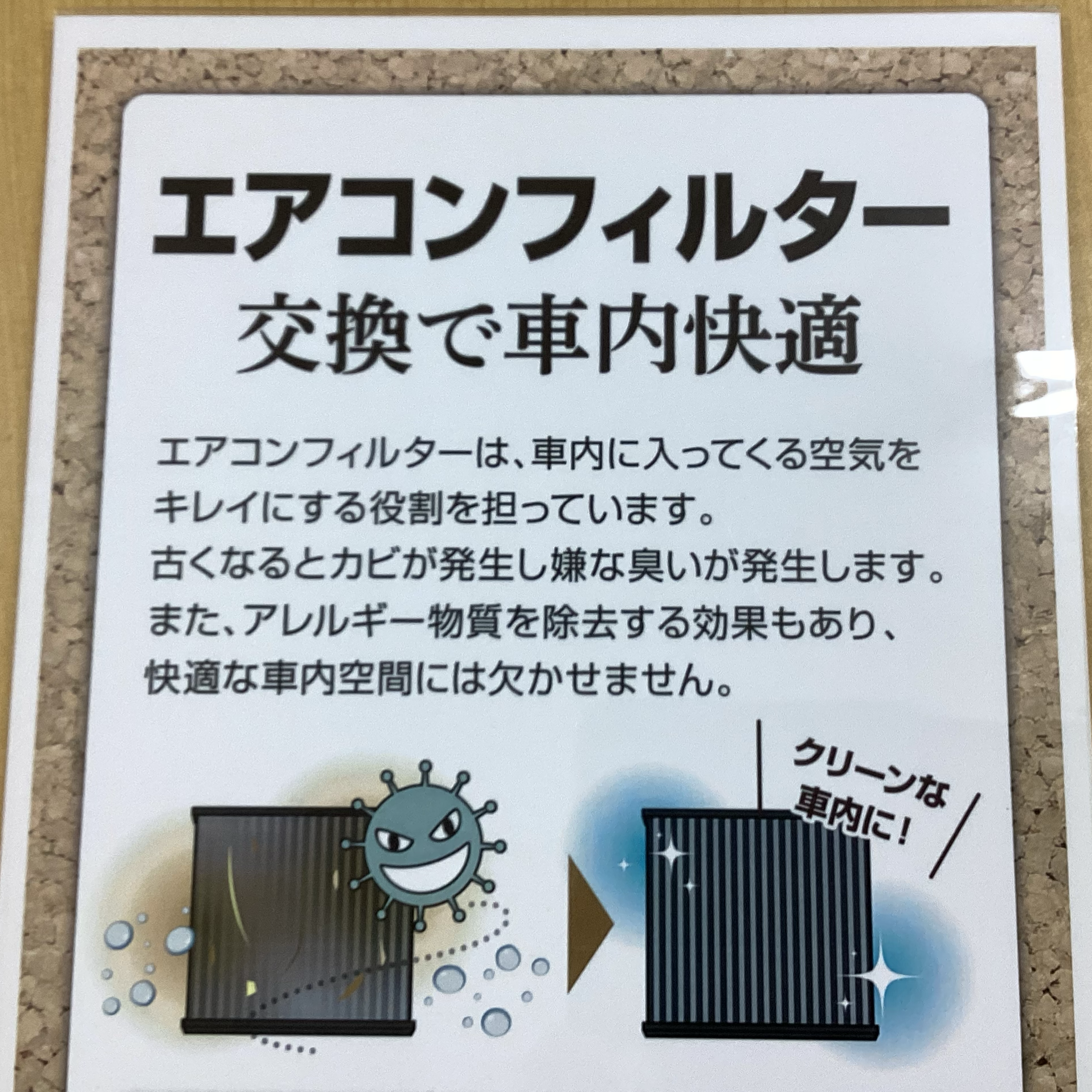 エアコンフィルターは外部から取り込まれる空気をキレイにするパーツです。