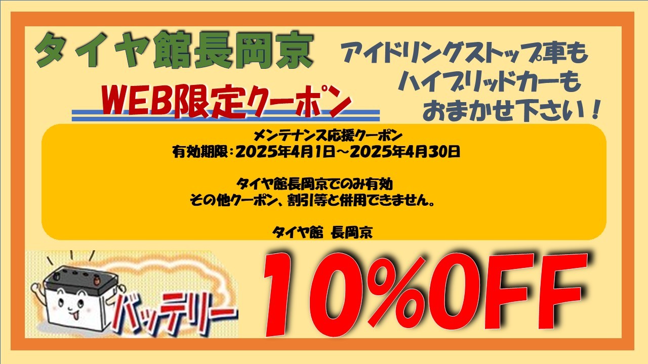 バッテリー10%OFFクーポン
