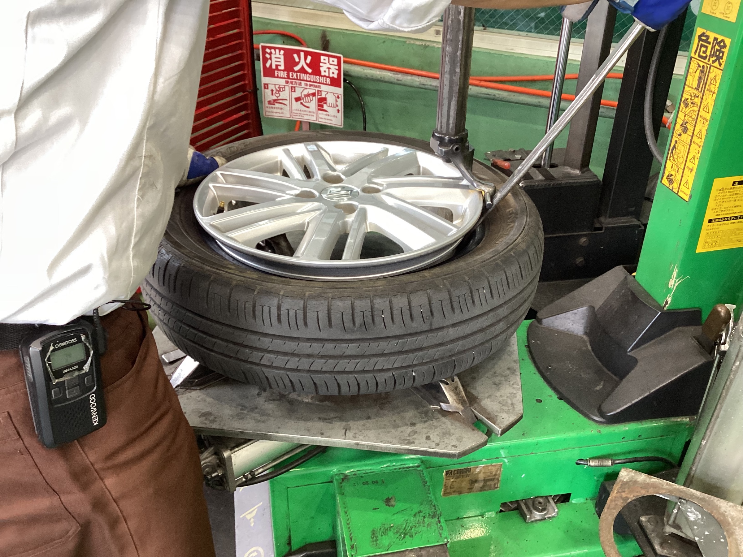 古いタイヤをばらして、交換していきます。