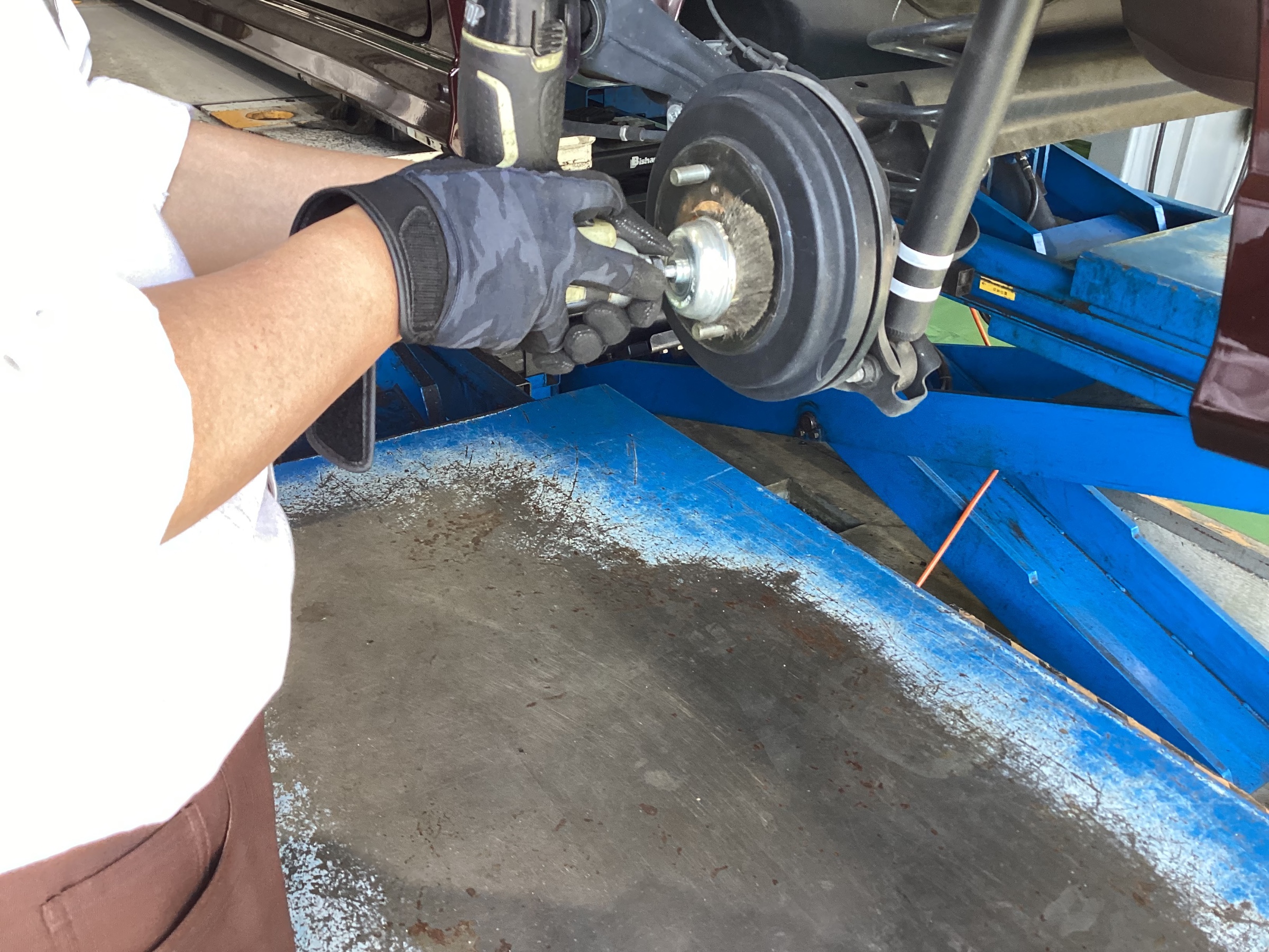 タイヤを装着する前に、ハブ防錆も施工していきます。