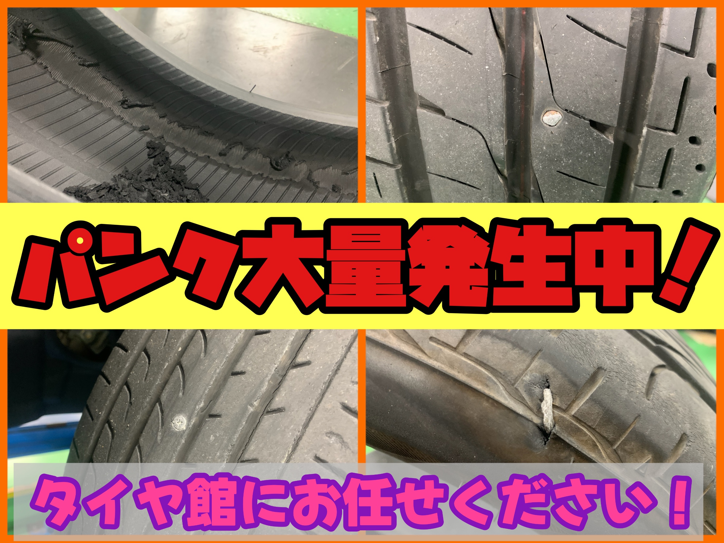 最近、パンクでのご入庫が多発しております!!!